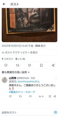 当院でケアをしている、ドラマ「相棒」で角田課長役でお馴染みの山西惇さん出演の「最後のドン・キホーテ」を観劇に行きました! 当院でケアをしている、ドラマ「相棒」で角田課長役でお馴染みの山西惇さん出演の「最後キホーテキホーテ」を観劇に行きました! とても面白い演出・生演奏・たくさんの笑いありの、あっという間の3時間45分でした。 山西惇さんのご活躍をこれからも応援していきます!